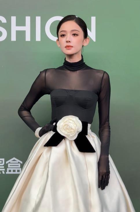 相比之下,娜扎的选择则显得更为稳妥。她以一袭黑色高领透视上衣搭配白色蓬蓬裙亮相,试图诠释“暗夜系少女”的独特气质。