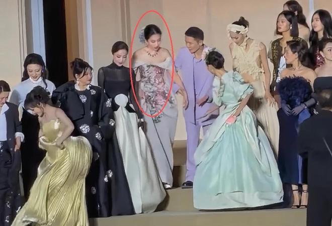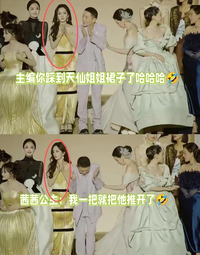现场画面显示,VOGUE主编亲自为其整理裙摆,并引导其站至中心位,钟楚曦与娜扎也主动退让空间,这一系列细节无不透露出品牌意志的主导作用。